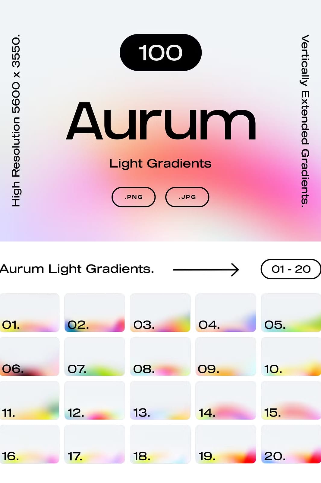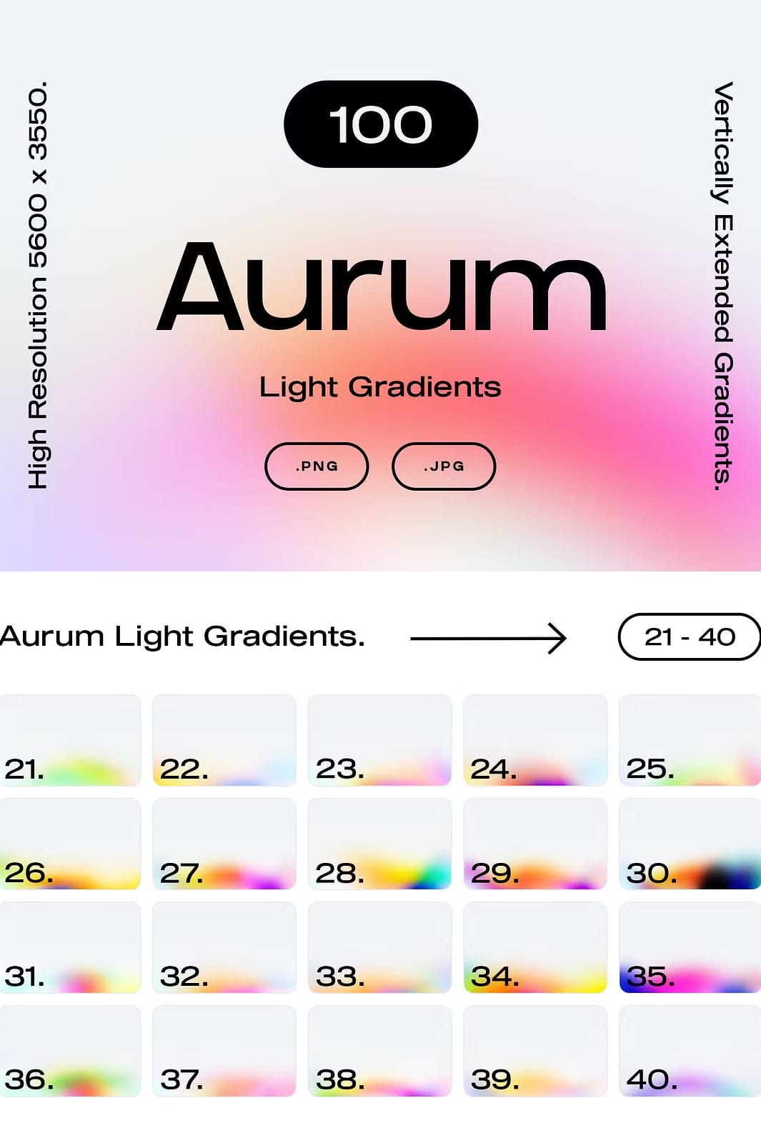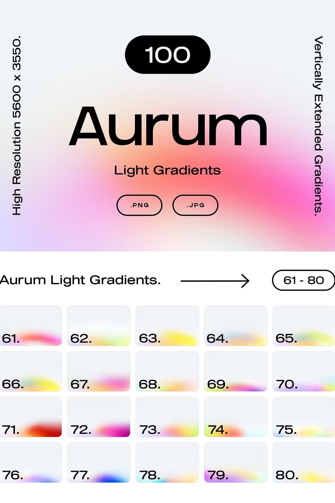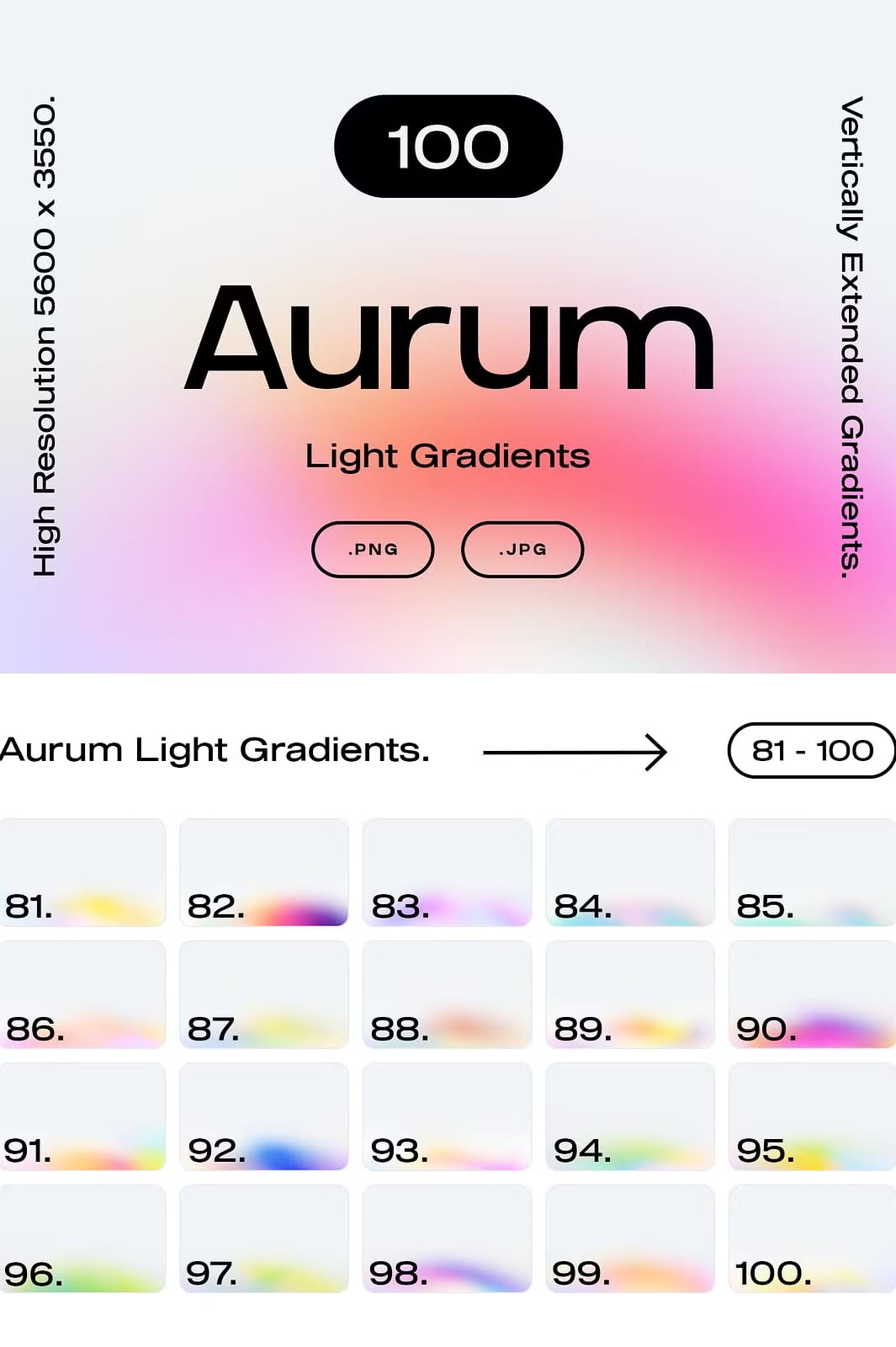 Transform your visual projects and inspire your audience with the radiant beauty of the Aurum Light Gradients collection. Click the button below to download all 110 high-quality light gradients, including exclusive bonus files and templates, and start bringing your designs to life with glowing, vibrant energy.