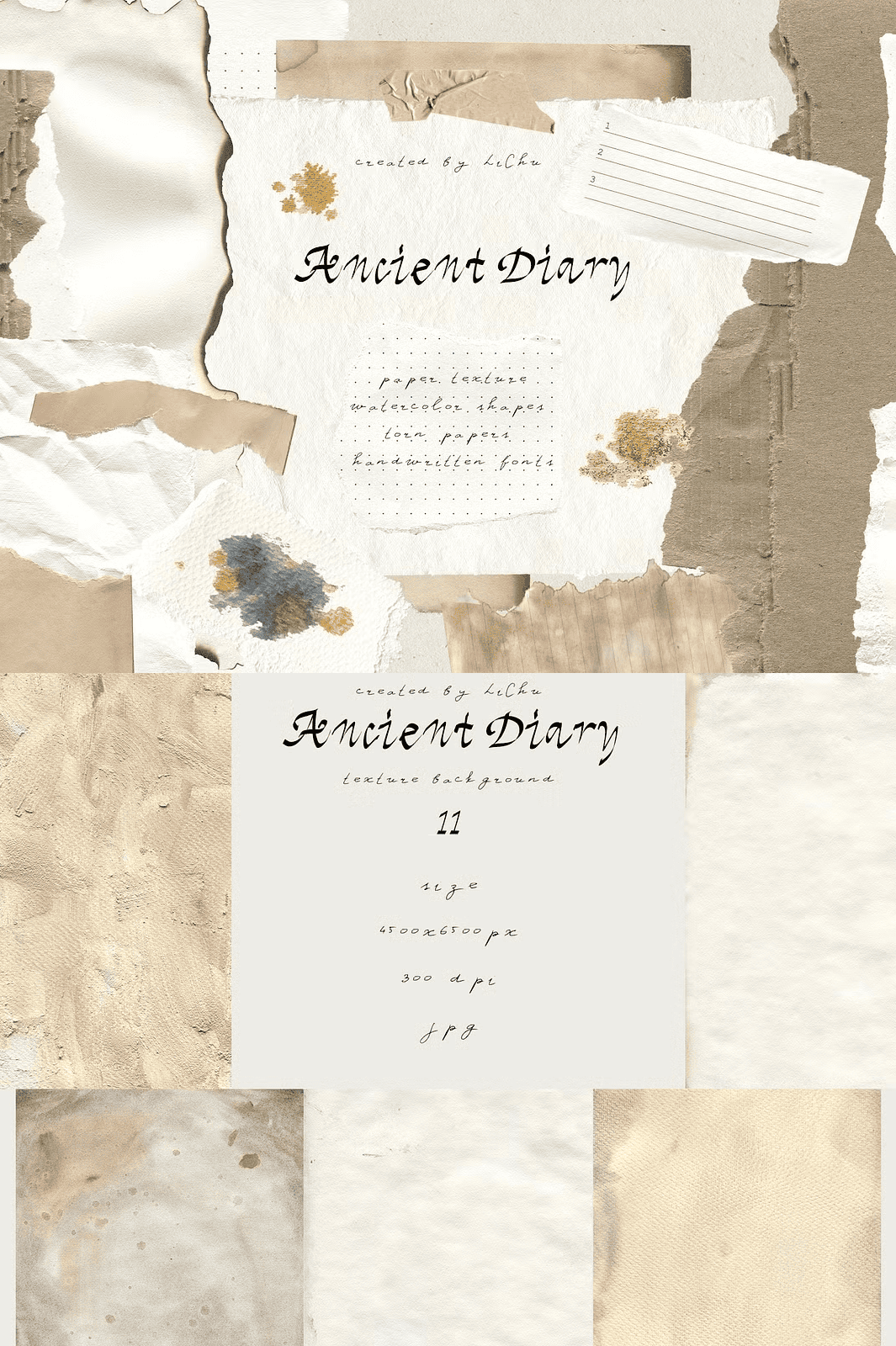 Step into the past with the **Ancient Diary Collection**—a meticulously crafted digital texture pack packed with 105 high-resolution assets designed to deliver authentic, aged charm to your creative projects. Each file is created at **300 DPI** and sized at **4500 x 6500 pixels**, ensuring crisp, printable detail across all formats and surfaces. Whether you’re designing for physical products or digital content, this collection gives you true-to-life textures that speak of history, storytelling, and timeless beauty. Elevate your work with textures that aren’t just visual—they’re emotional.