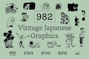 Immerse yourself in a vast collection of historic Japanese art with this incredible Vintage Japanese Graphics Bundle that offers a unique glimpse into the rich cultural and artistic heritage of Japan from the 1940s and 1950s. Carefully restored and digitally enhanced, these graphics bring to life the authentic charm of classic Japanese song paperbacks, now freshly available on the internet for your creative projects. Comprehensive Collection of Authentic Graphics This monumental bundle includes a total of 982 high-quality graphics, each ...