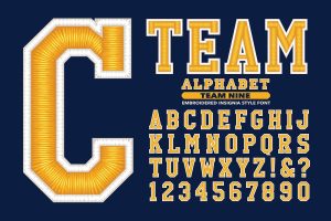 For professionals and enthusiasts in high school, collegiate, and professional sports, as well as graphic designers and superfans, the Embroidered Sports and Collegiate Wear Alphabet is an essential collection that fuses style and practicality. This vector lettering set mimics the iconic appearance of custom embroidery, delivering the look of textured thread with an impactful 3D sheen—without the cost or complexity of actual embroidery. Distinctive Features and Versatility Authentic Embroidered Look with Customizable Colors This collection offers 15 popular team-color combinations ...