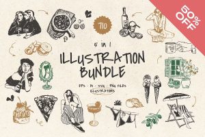 Unlock Unmatched Creative Value with This Extensive Illustration Bundle Maximize your creative potential by purchasing our Illustration Bundle, a comprehensive collection of 710 meticulously crafted illustrations gathered from five of our best-selling collections. Valued at over $90, $100, or even $750 separately, this bundle presents an extraordinary opportunity to enhance your design assets at half the price. Designed especially for Adobe Illustrator users, this versatile collection equips you with thousands of high-quality vectors to bring logos, brand identities, social media ...