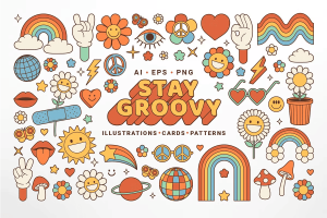 Tap Into the Power of 60s-70s Flower Power Aesthetic Dive headfirst into the vibrant world of **Flower Power** with the *Groovy Hippie Collection*—a colossal bundle of thematic illustrations and decorative elements in a trendy, retro cartoon style. From swirling rainbows and radiant hearts to whimsical mushrooms, blooming daisies, and peace signs, this collection captures the soul of the counterculture era with modern flair. Every design is handcrafted to radiate **good vibes, creativity, and free-spirited joy**. Whether you’re crafting a nostalgic ...