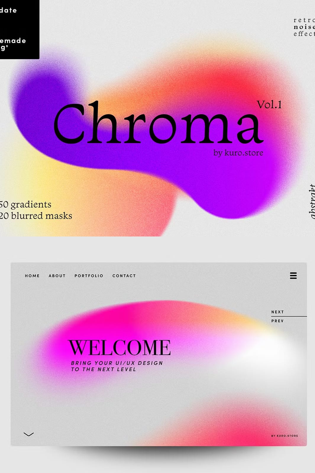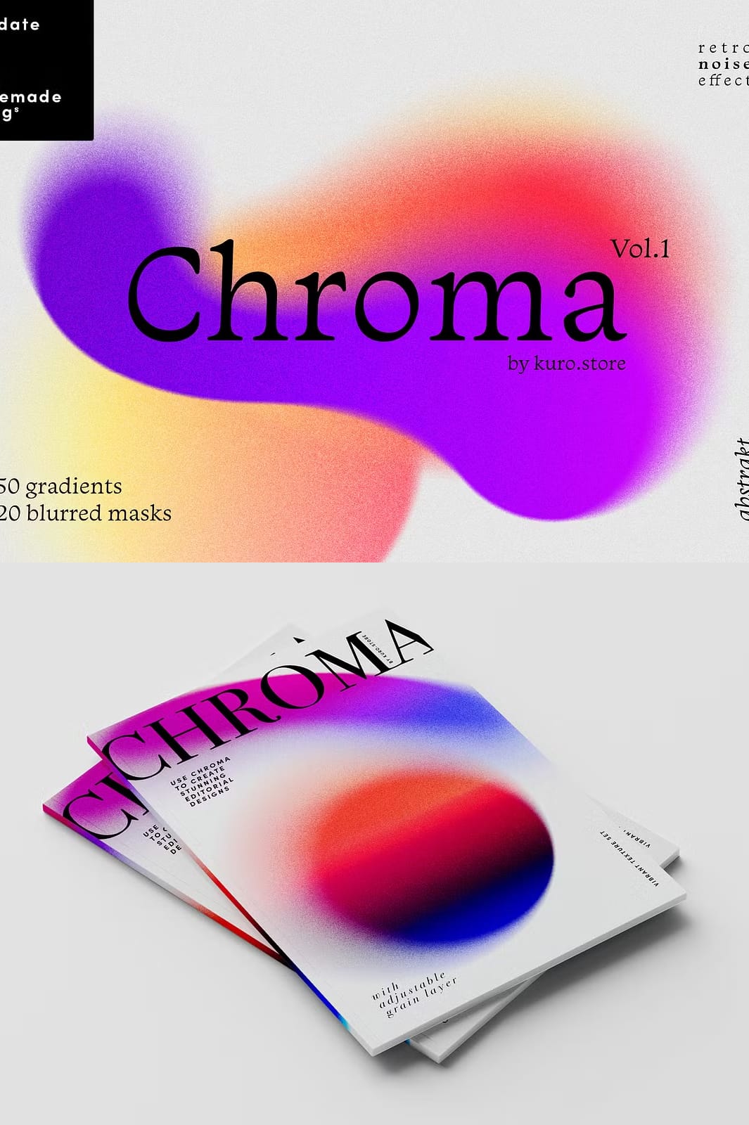 Transform your creative work with the vibrant and versatile Chroma Grainy Gradient Textures. Click the button below to download this high-quality collection and start designing with bold gradients and retro grain effects today.
