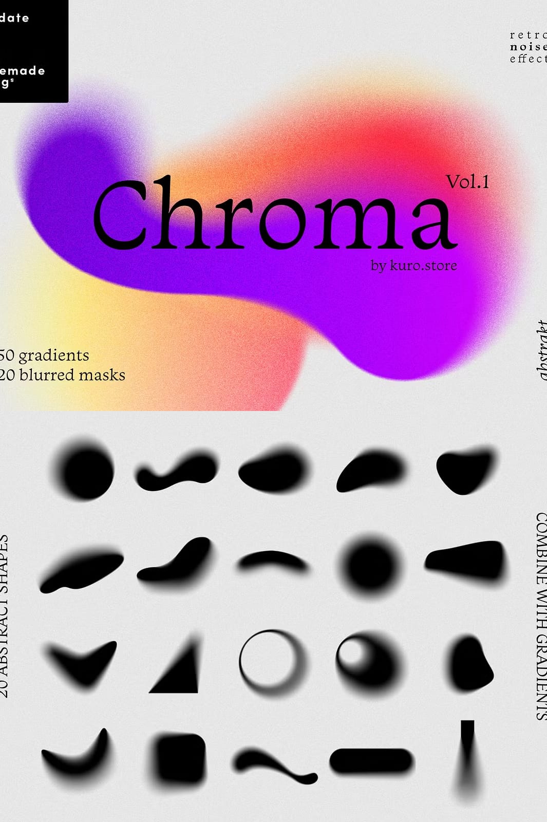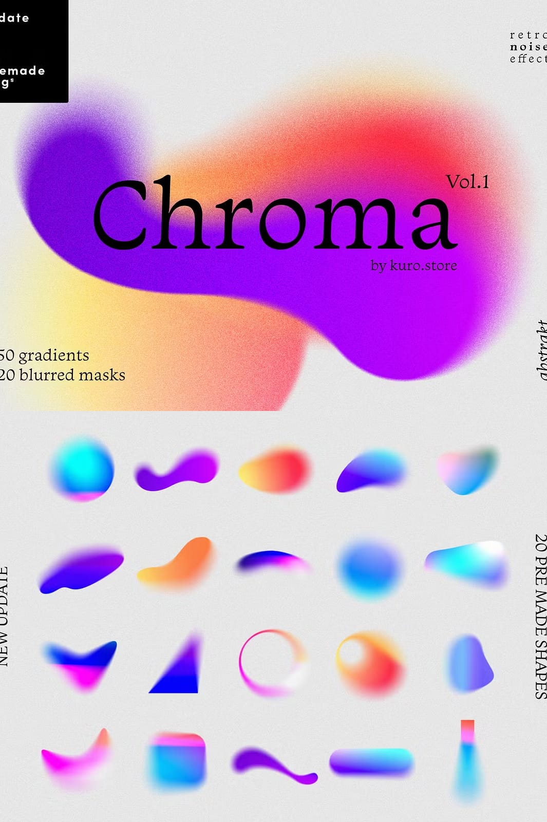 Download the collection and explore the variety of gradients and shapes included. Experiment with layering gradients and grain textures to create unique, modern designs with a retro twist. This set is perfect for designers looking to add a fresh, dynamic edge to their projects.