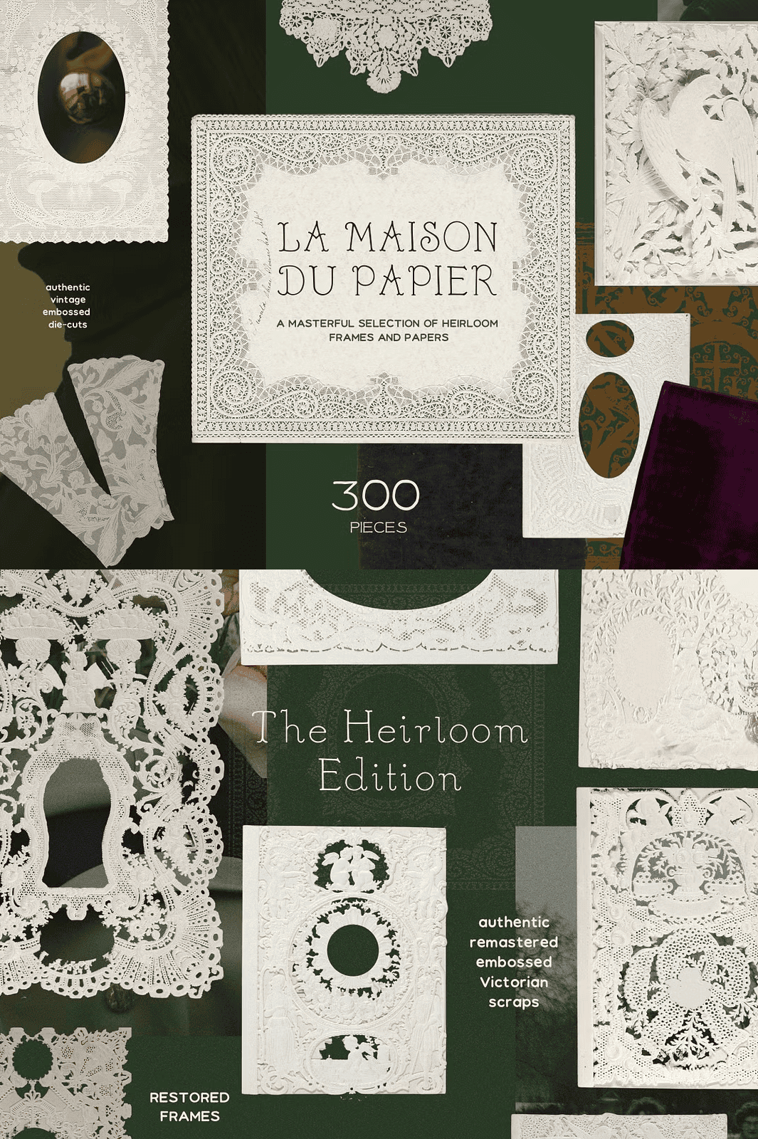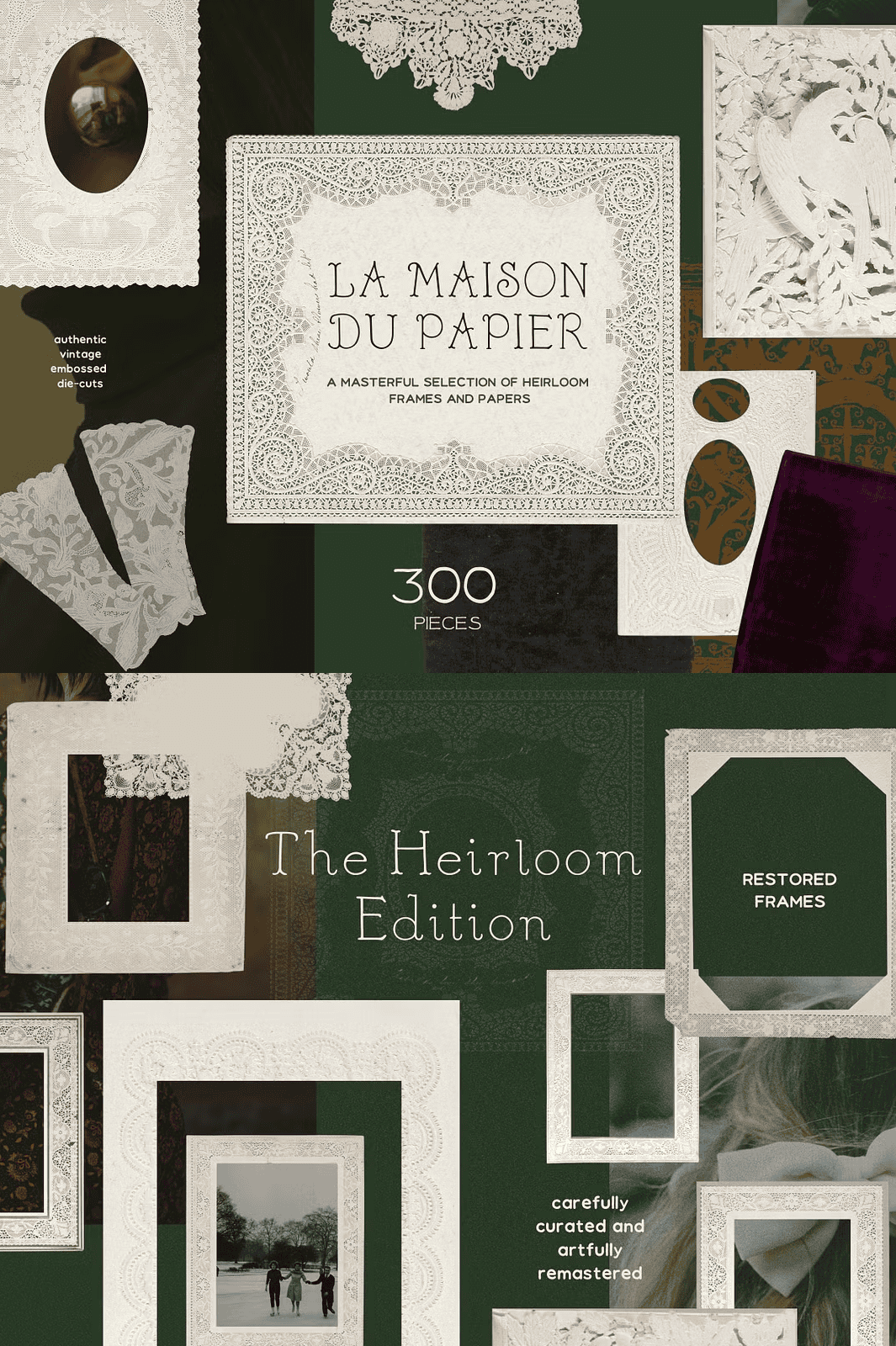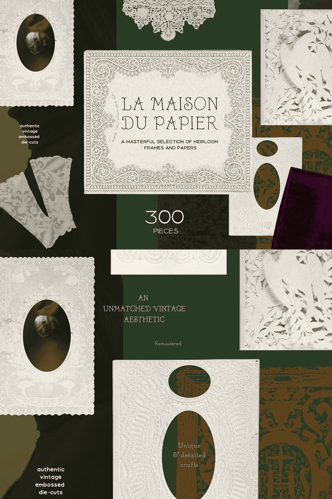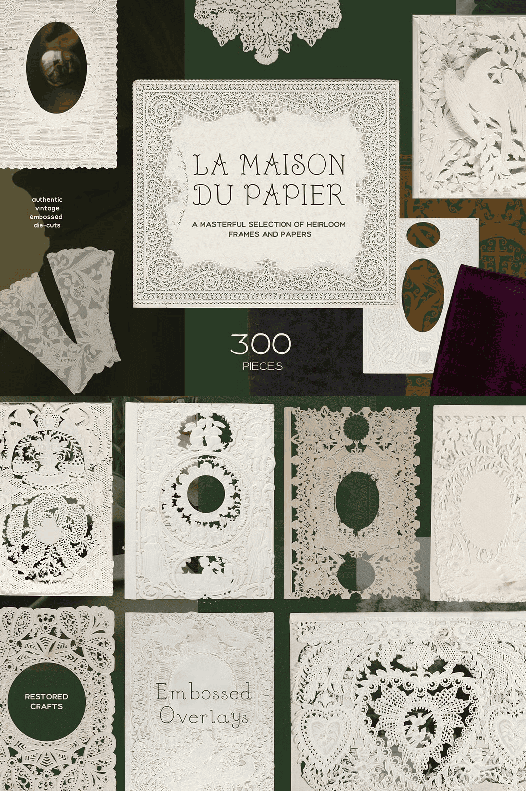Immerse yourself in the quiet grace of bygone eras with the **Emboss Lace Frames & Vintage Paper Collection** — a meticulously curated, artfully remastered set of 300+ premium digital elements that celebrate the soul of handcrafted paper. Every texture, frame, and overlay is lovingly recreated to evoke the richness, depth, and delicate artistry of vintage design.