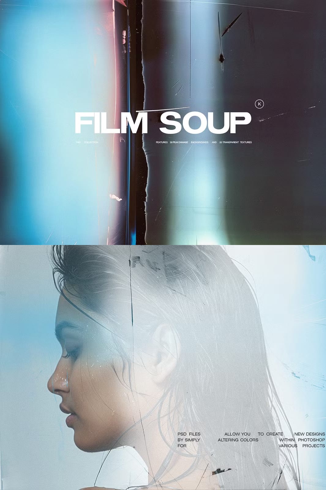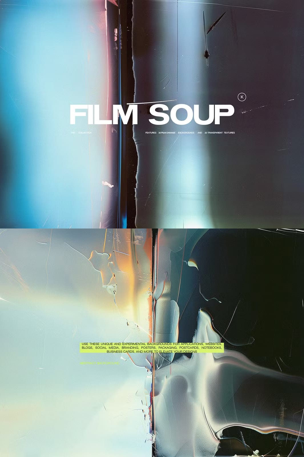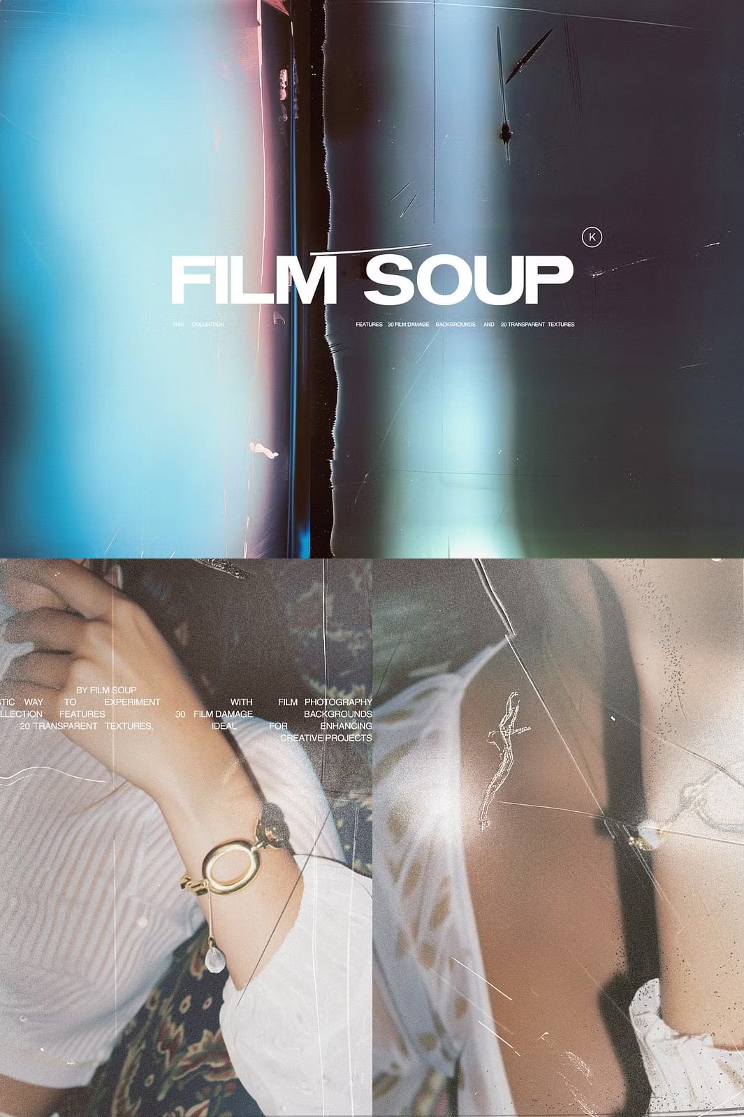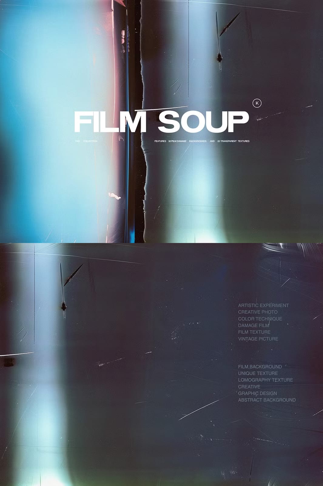 Film Soup is an innovative and captivating collection of 30 damaged film backgrounds and 20 transparent textures designed to elevate your creative projects. Inspired by the experimental art form of Film Soup photography, this collection was thoughtfully crafted using advanced AI techniques alongside traditional Photoshop methods to bring you truly unique visual assets. Whether you are working on digital art, websites, branding, or print media, these textures provide a rich vintage feel coupled with modern versatility.