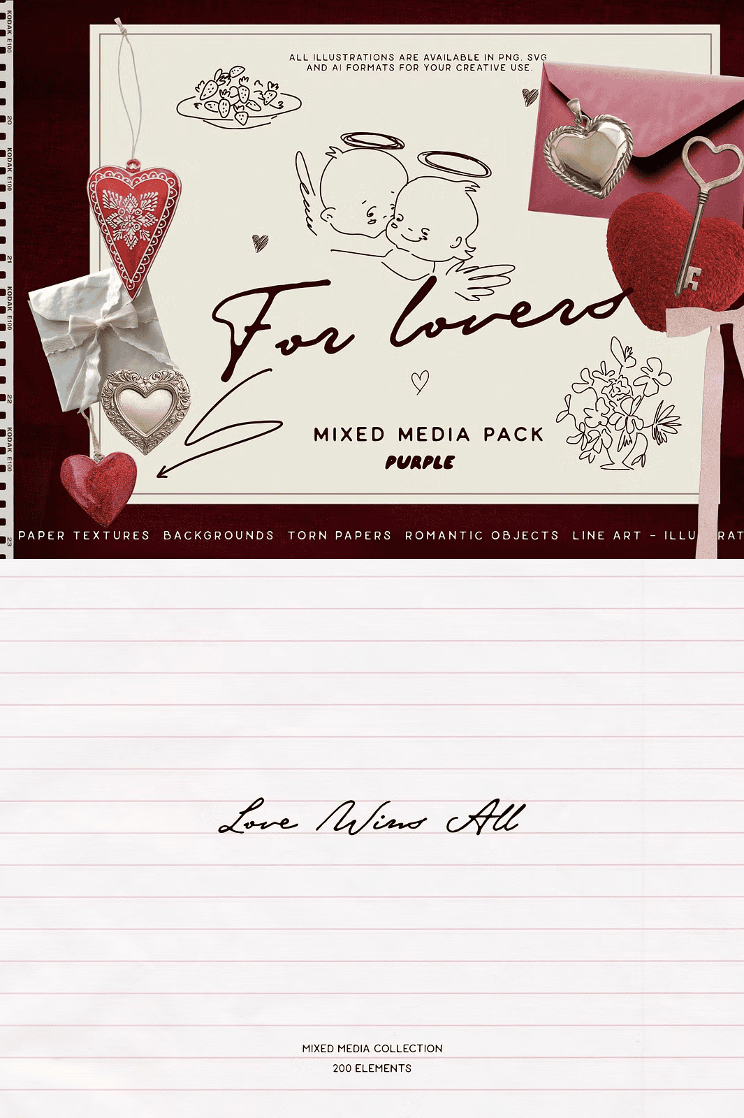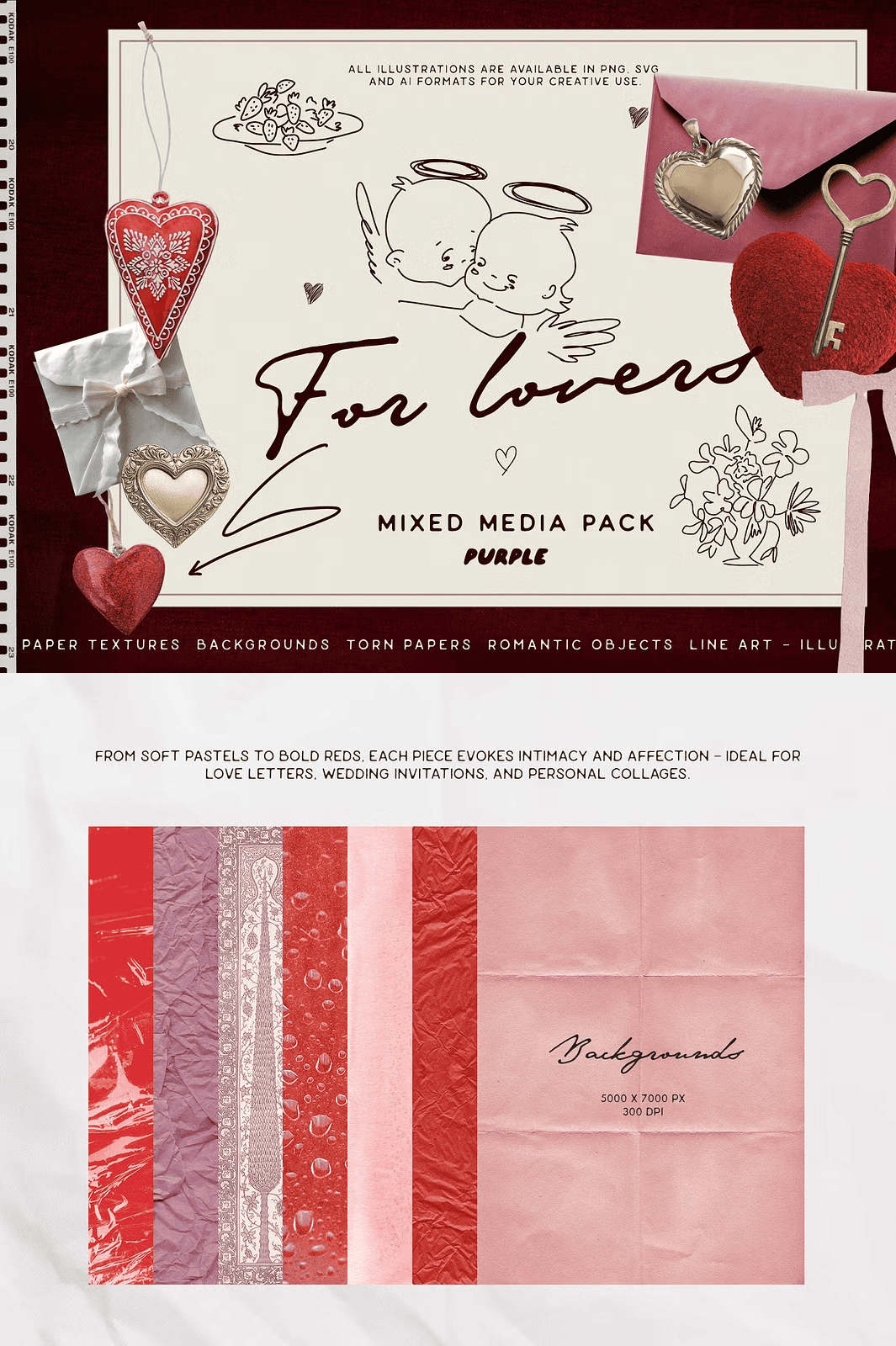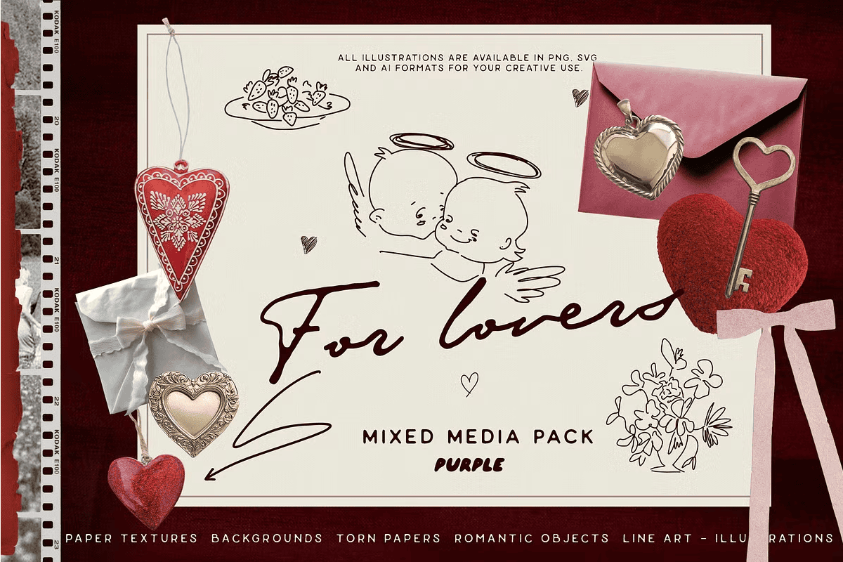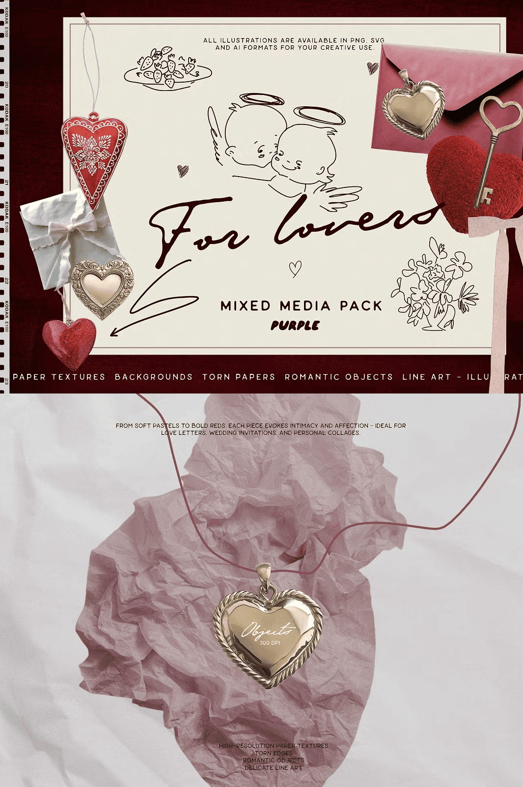 Unleash the magic of romance with the **For Lovers Mixed Media Collage Kit** — a richly curated collection crafted for dreamers, storytellers, and creators who believe every design should carry a feeling. This isn’t just a set of assets — it’s a visual language of love, built from soft textures, vintage charm, and deeply expressive imagery.