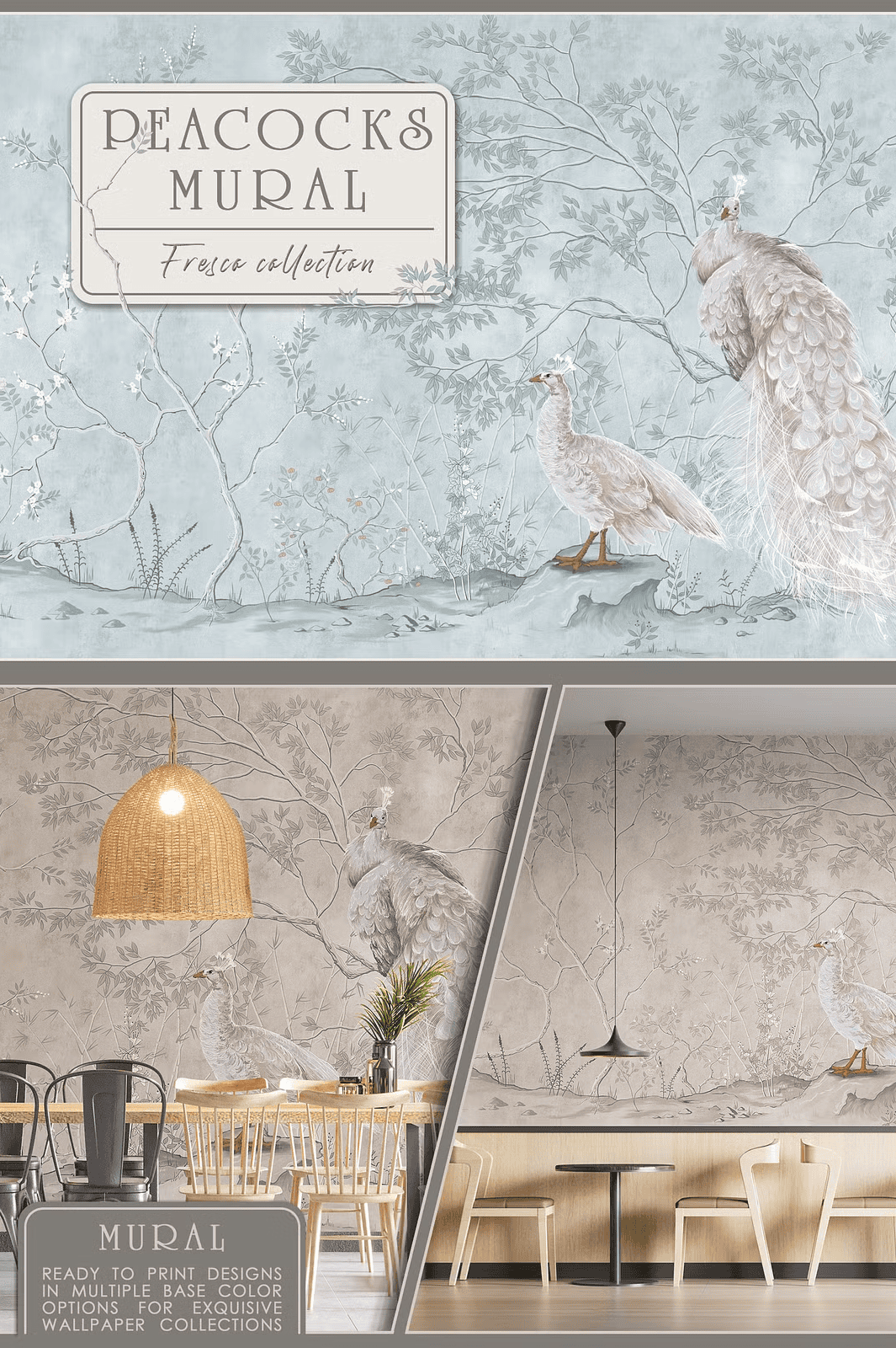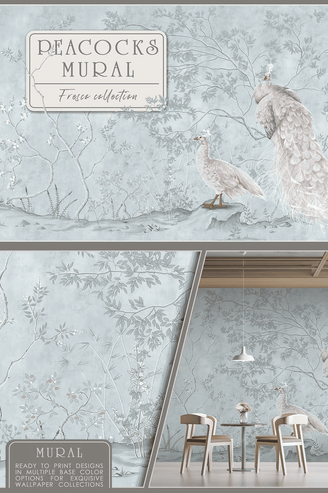 - Design unique wall coverings or feature walls with peacocks in naturalistic tree settings for a regal, serene ambiance.