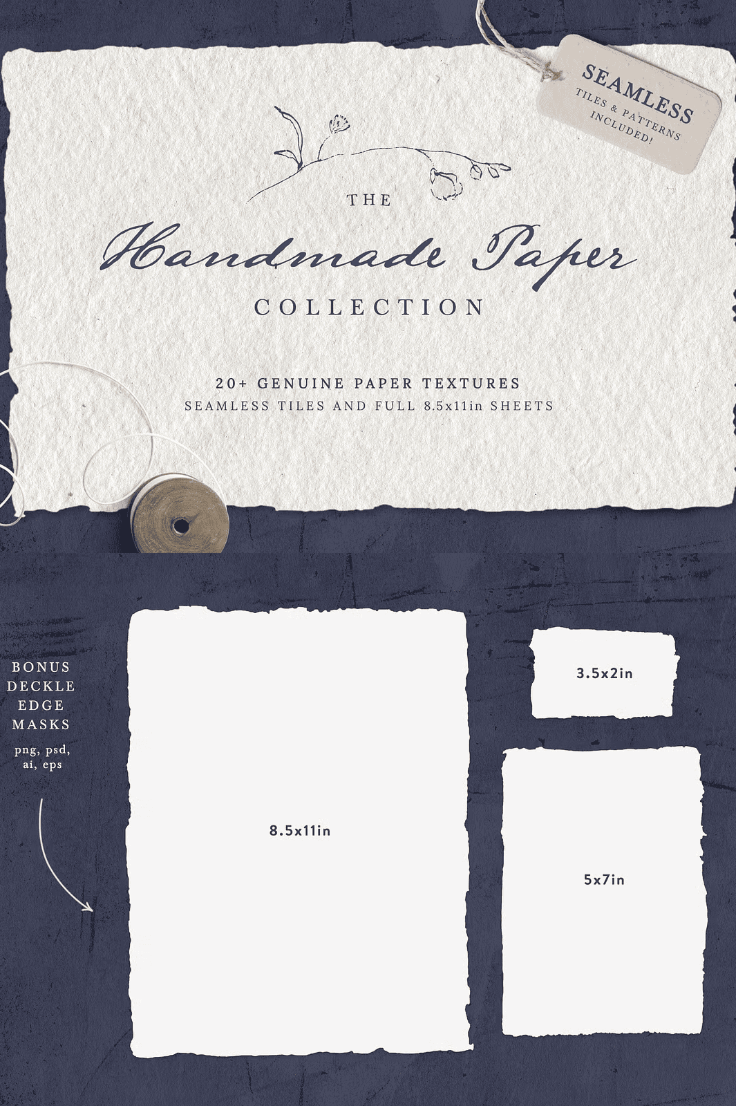 • 3 BONUS deckle edge shapes (8.5x11in, 5x7in, 2×3.5in) – Available in PNG, vector PSD, AI, and EPS formats. Use these as masks to give your designs an authentic, hand-cut, natural edge—ideal for invitations, cards, and layered compositions.