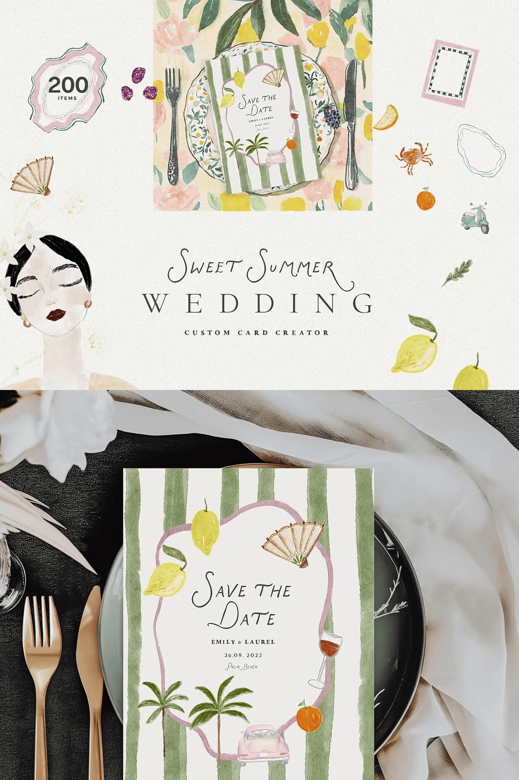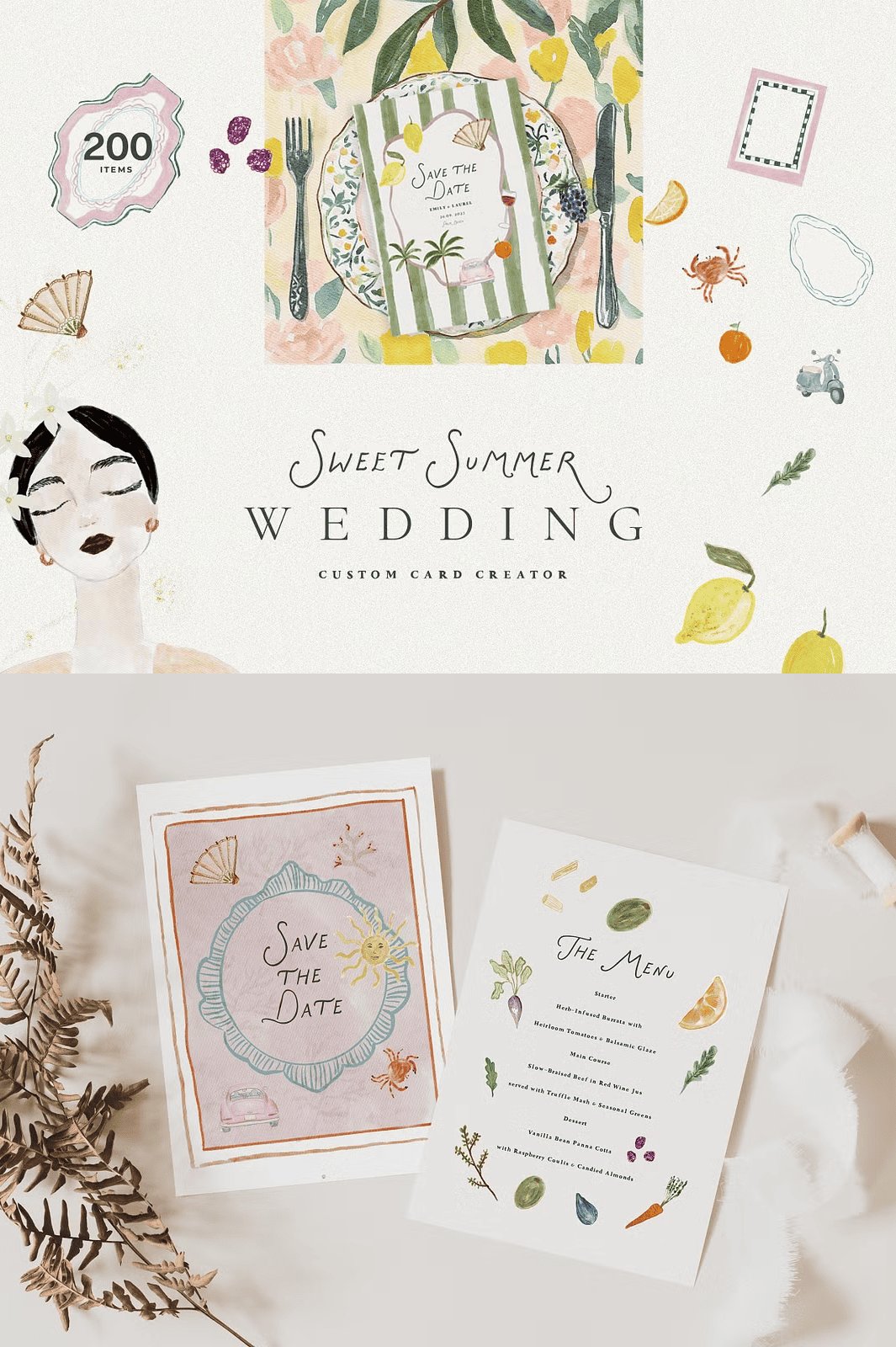 This isn’t just a design kit — it’s a creative passport to laid-back luxury, ideal for floral weddings, seaside ceremonies, rustic chic events, and seasonal branding that feels personal, warm, and deeply authentic.