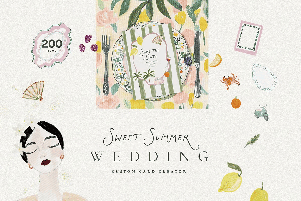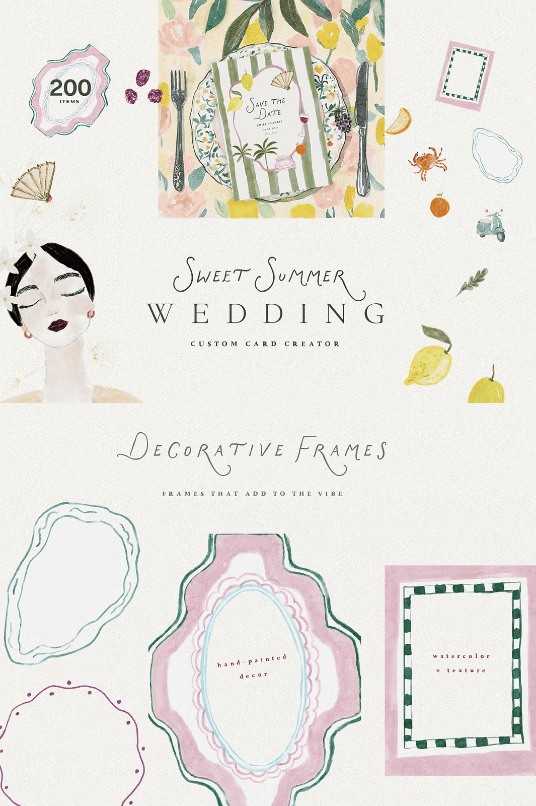 Unlock the magic of summer romance with the **Handmade Wedding Watercolor & Frames** collection — a rich, soulful set of 110+ hand-drawn watercolor illustrations crafted to elevate your stationery, invitations, and branding with effortless charm. Every element is painted with care, blending the soft textures of real watercolor with the timeless grace of Mediterranean style.