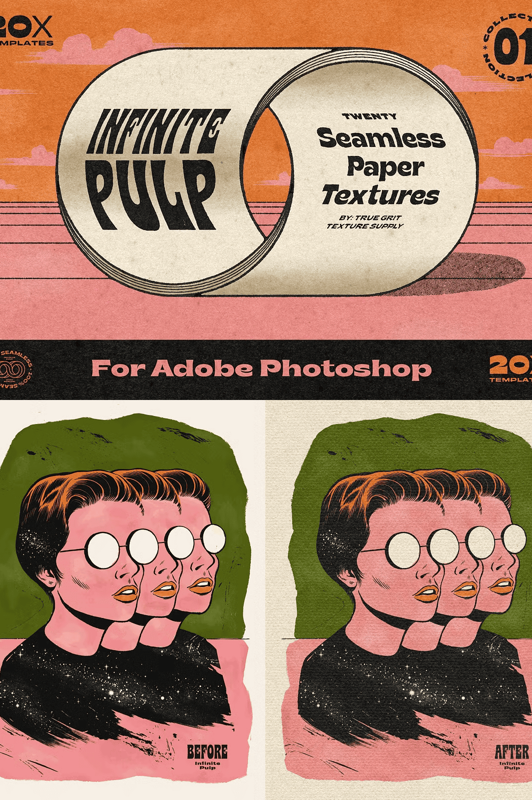 Stop working with flat, limited templates. With Infinite Pulp, you gain access to a powerful library of 20 seamless, high-quality paper texture templates designed specifically for Adobe Photoshop—crafted to give your digital projects unmatched depth, authenticity, and creative freedom. Engineered for professionals and passionate designers, these textures don’t just sit on your canvas—they breathe life into it. Transform your layouts, illustrations, and branding with the tactile warmth of real paper, reimagined for the digital age.