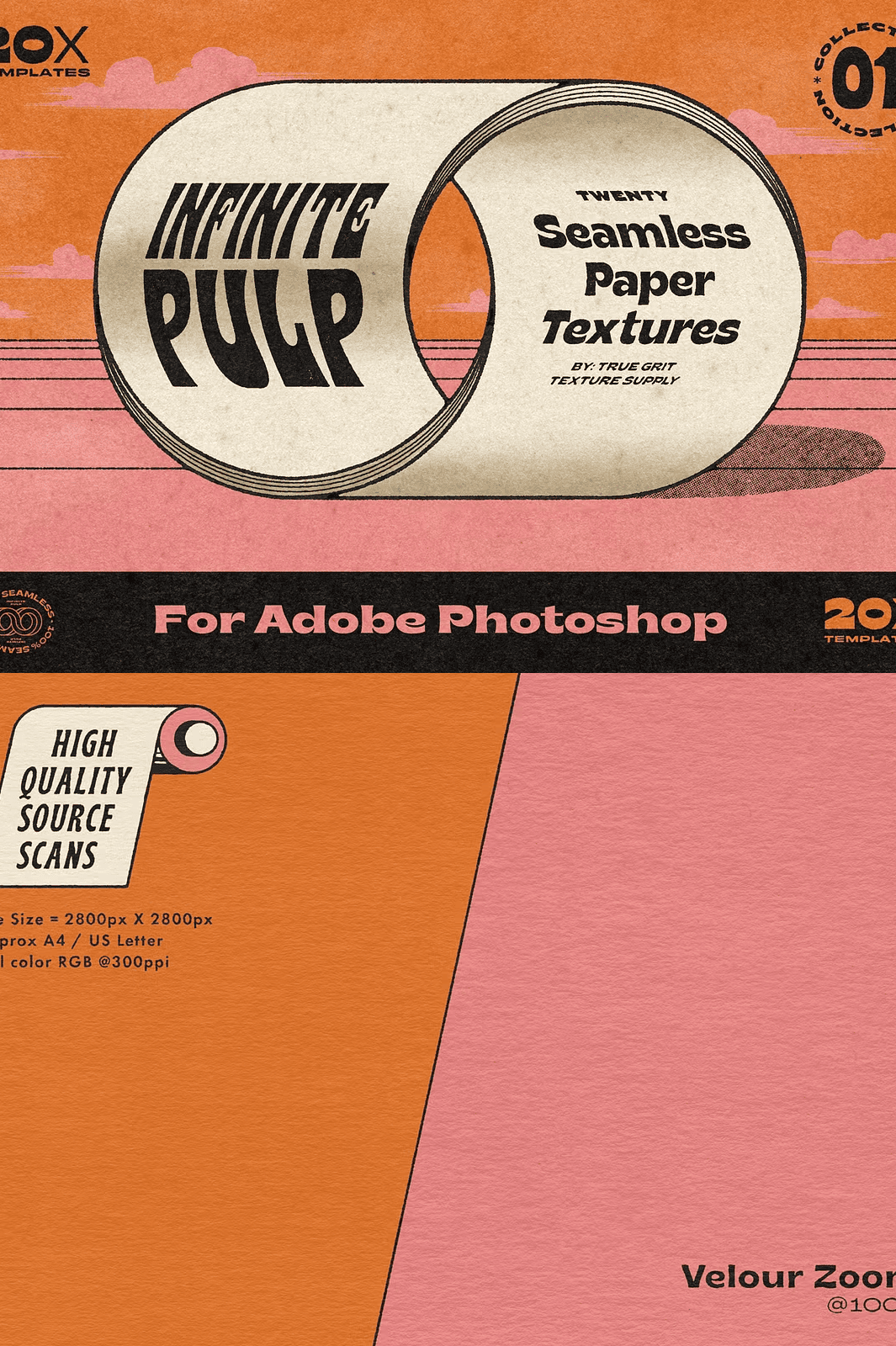 Unlike ordinary overlays that repeat awkwardly or flatten your design, Infinite Pulp uses multi-layered construction to deliver rich, organic texture with natural highlights and depth. Every texture is meticulously scanned at 300ppi in full color RGB, ensuring crystal-clear detail at any scale. The base tile size of 2800px x 2800px guarantees compatibility with any canvas size—portrait, landscape, square, or custom dimensions.