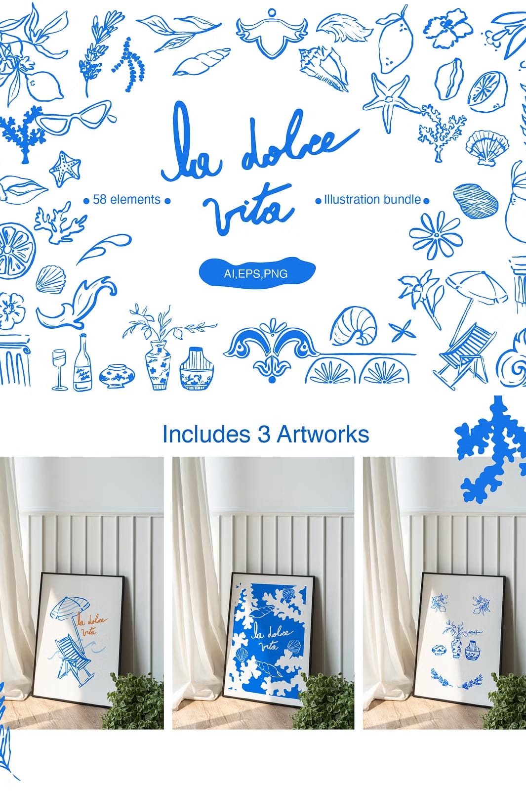 - 3 fully designed artworks with dimensions of 3000 x 4500 pixels and 300 dpi quality, available in AI, EPS, and JPG formats