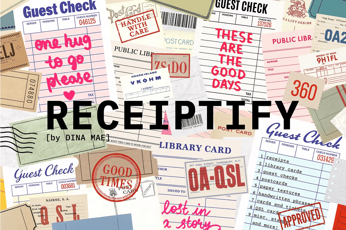 [Explore the full collection: https://creativemarket.com/dinamae/291724177-Receiptify—Vintage-Ephemera-Pack?cjdata=MXxZfDB8WXww&cjevent=68d3b955539411efb95c0154e93c0a1e&utm_source=cj&utm_content=100873817&utm_term=15736042&utm_medium=affiliate&utm_campaign=6472693#]