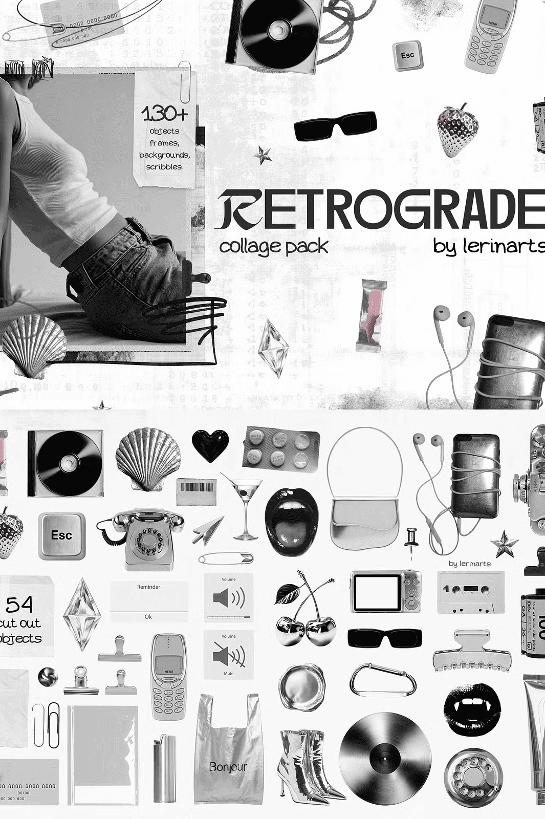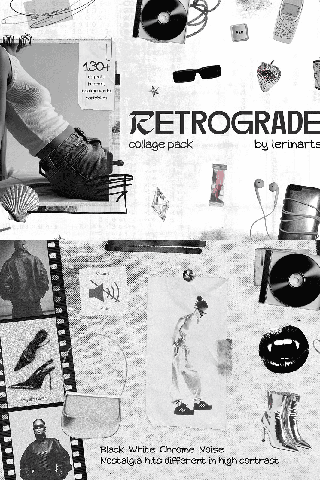 Step into the raw, unfiltered energy of the past with the **RETROGRADE Collage Pack**, a high-impact black & white design collection engineered for creators who refuse to blend in. This is not just a kit it’s a visual rebellion. With chrome accents, dramatic contrasts, and a vintage pulse, RETROGRADE delivers an edgy, cinematic feel perfect for album covers, editorial spreads, posters, zines, moodboards, digital journaling, scrapbooking, sticker packs, printable decals, phone case designs, and any project that demands attention without apology.