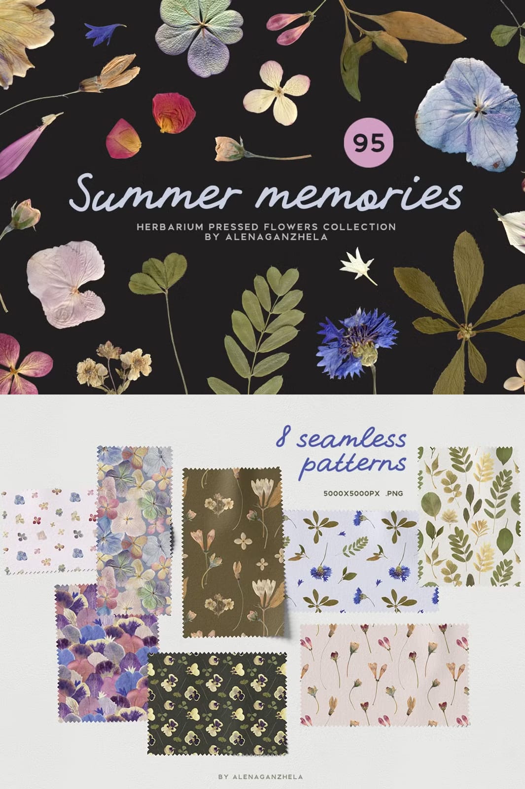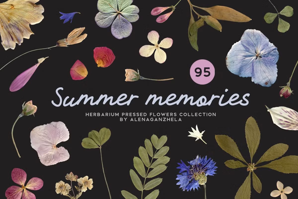 Elevate your artwork and design projects with this exceptional collection of hand-crafted herbarium elements and patterns. Bring natural elegance and authentic texture to your compositions with SUMMER MEMORIES.