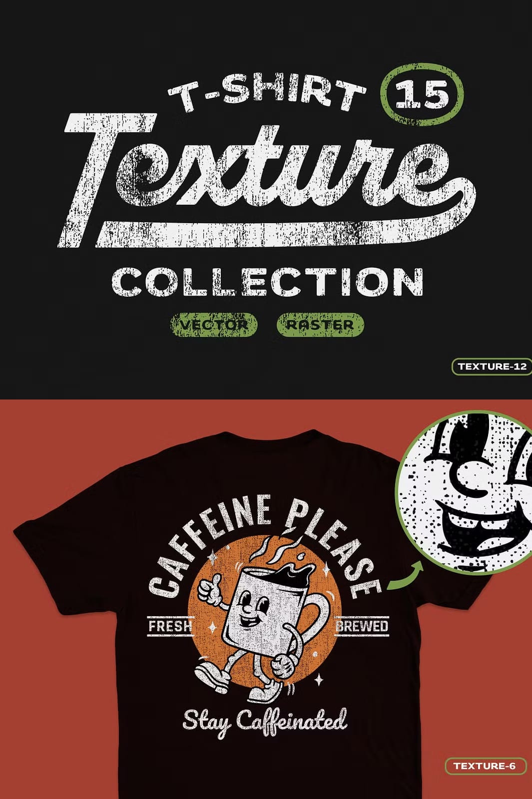 These textures are ideal for a variety of t-shirt design styles, helping artists and designers create truly captivating and authentic vintage looks. Apply these textures to: