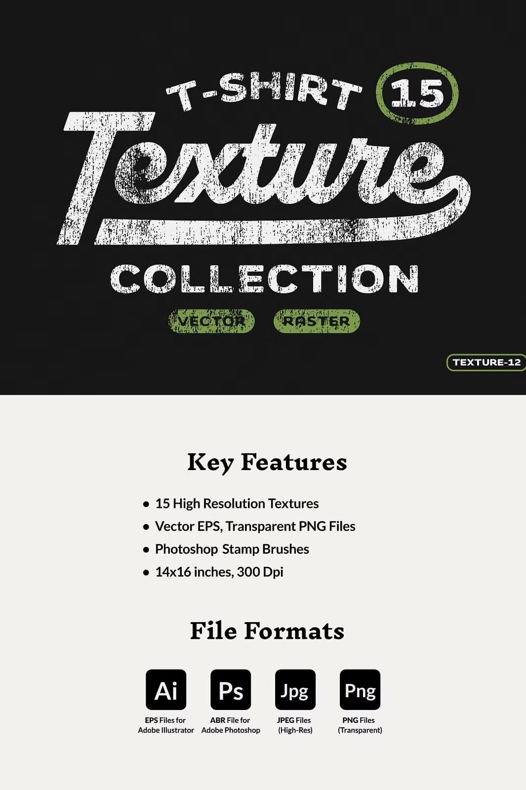 Designed for easy use, the transparent PNGs and Photoshop brushes allow you to effortlessly overlay and customize your textures with layer blending modes, opacity adjustments, and masking techniques. The vector files provide flexibility for resizing and perfect alignment, making this collection an indispensable asset for any graphic designer focusing on apparel design.