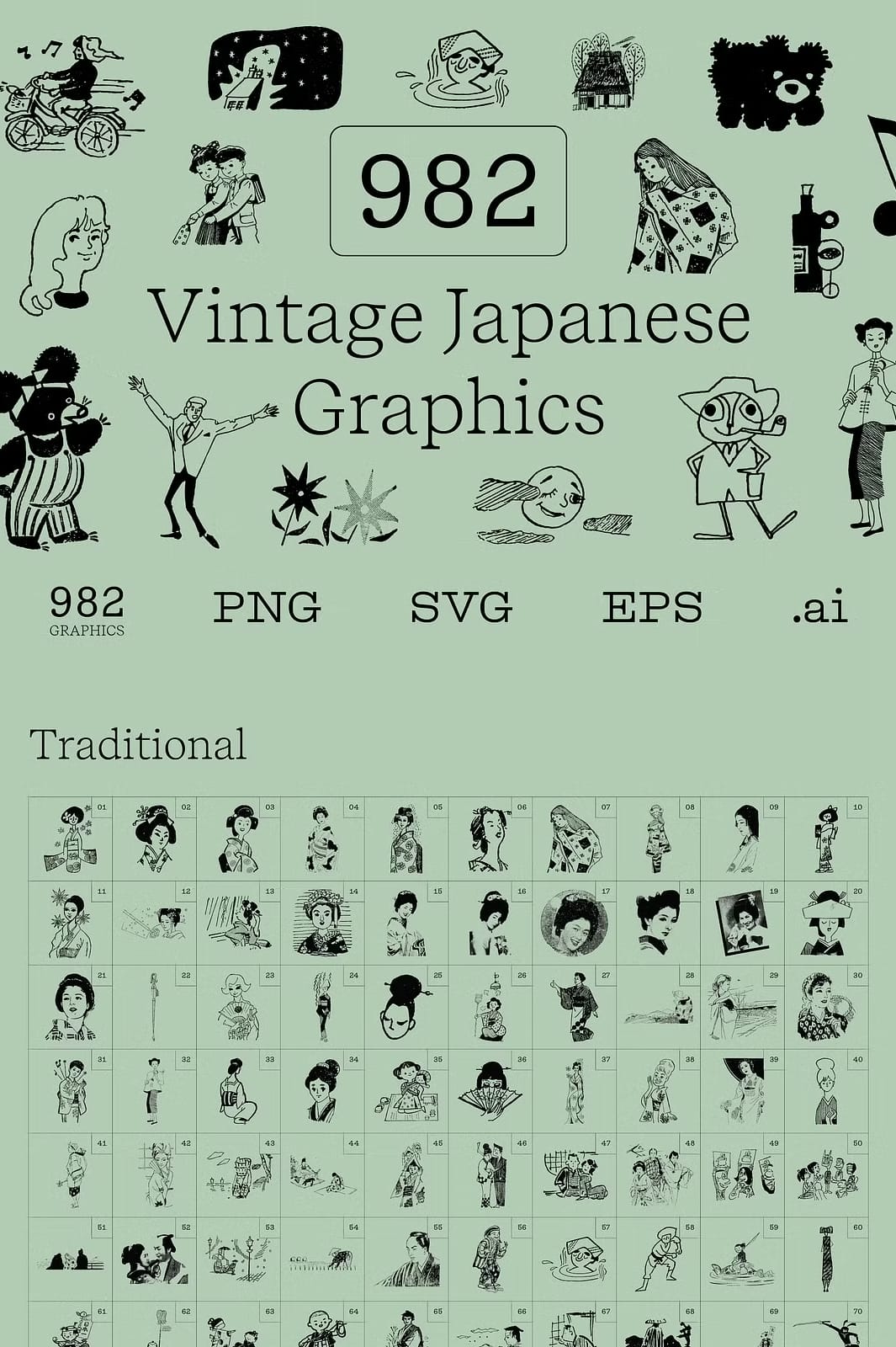 Unlock the power of vintage Japanese culture and enhance your creative projects with this exceptional graphics bundle today.