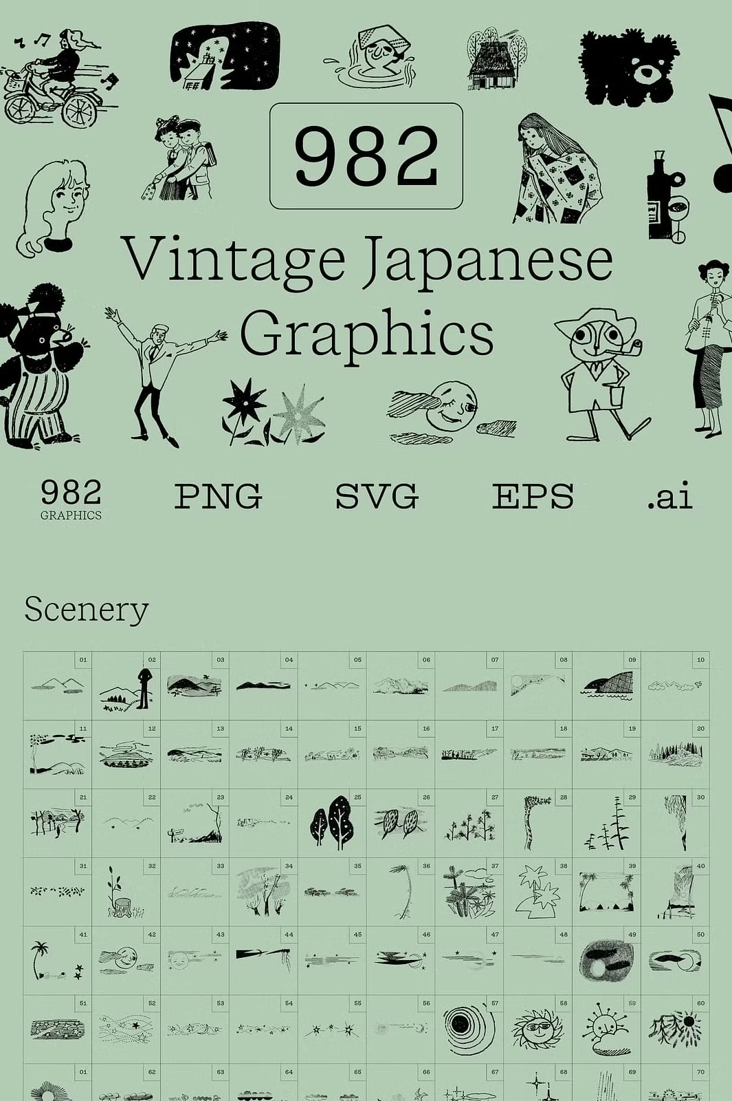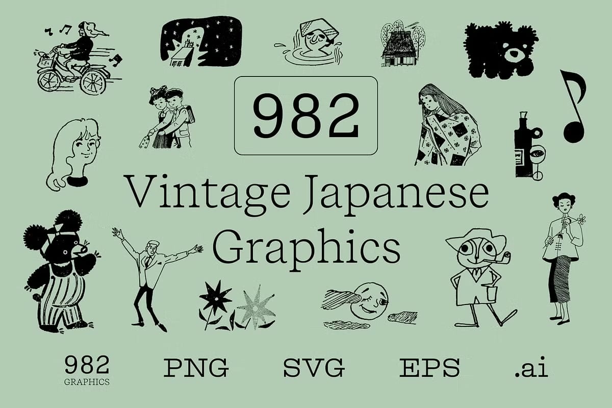 Elevate your designs and projects with the captivating spirit of mid-20th century Japanese artistry. This Vintage Japanese Graphics Bundle delivers a rich and authentic archive ready to inspire and invigorate your creative journey.
