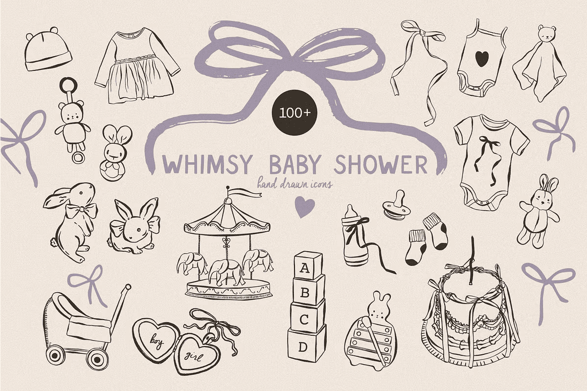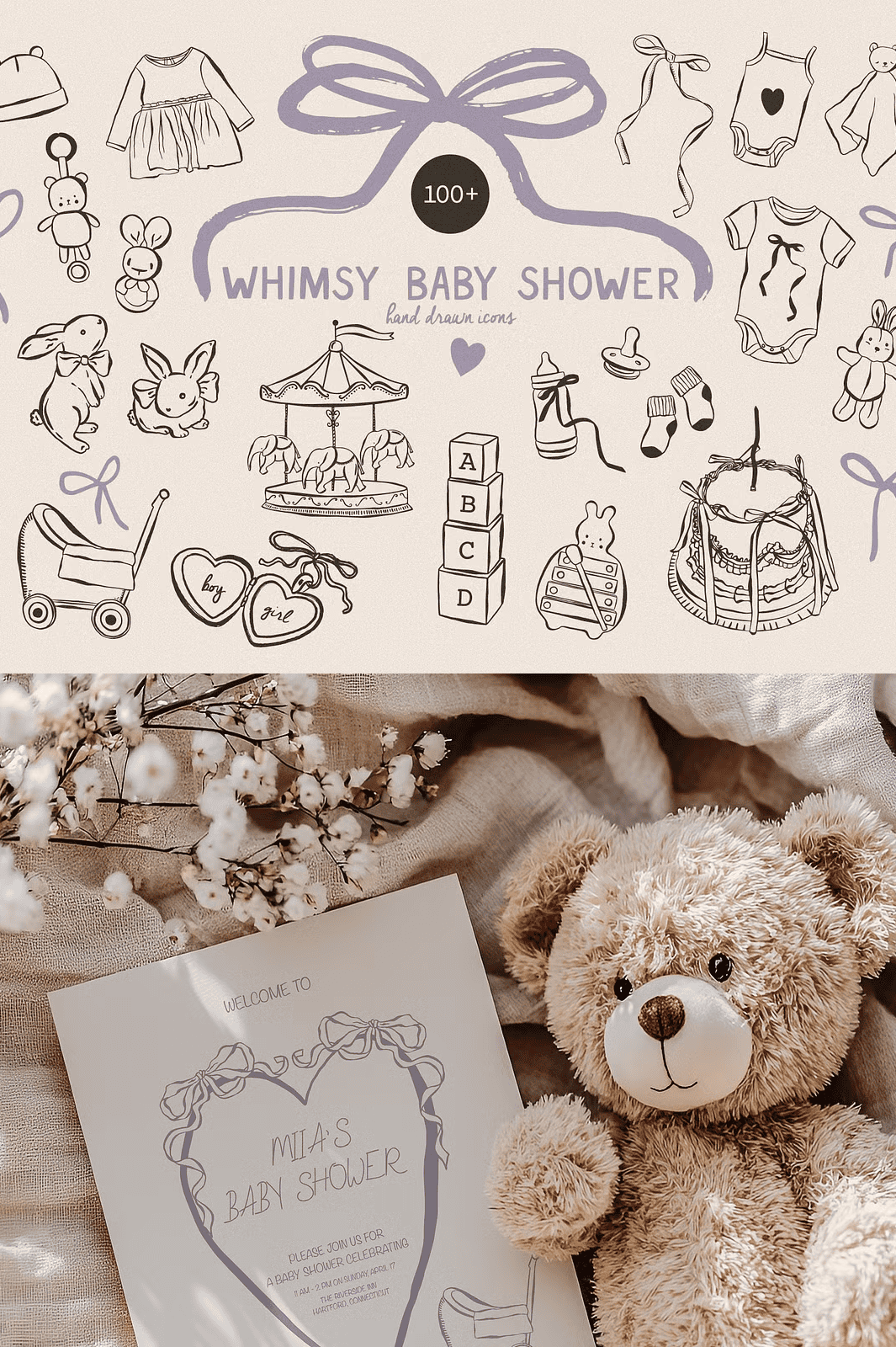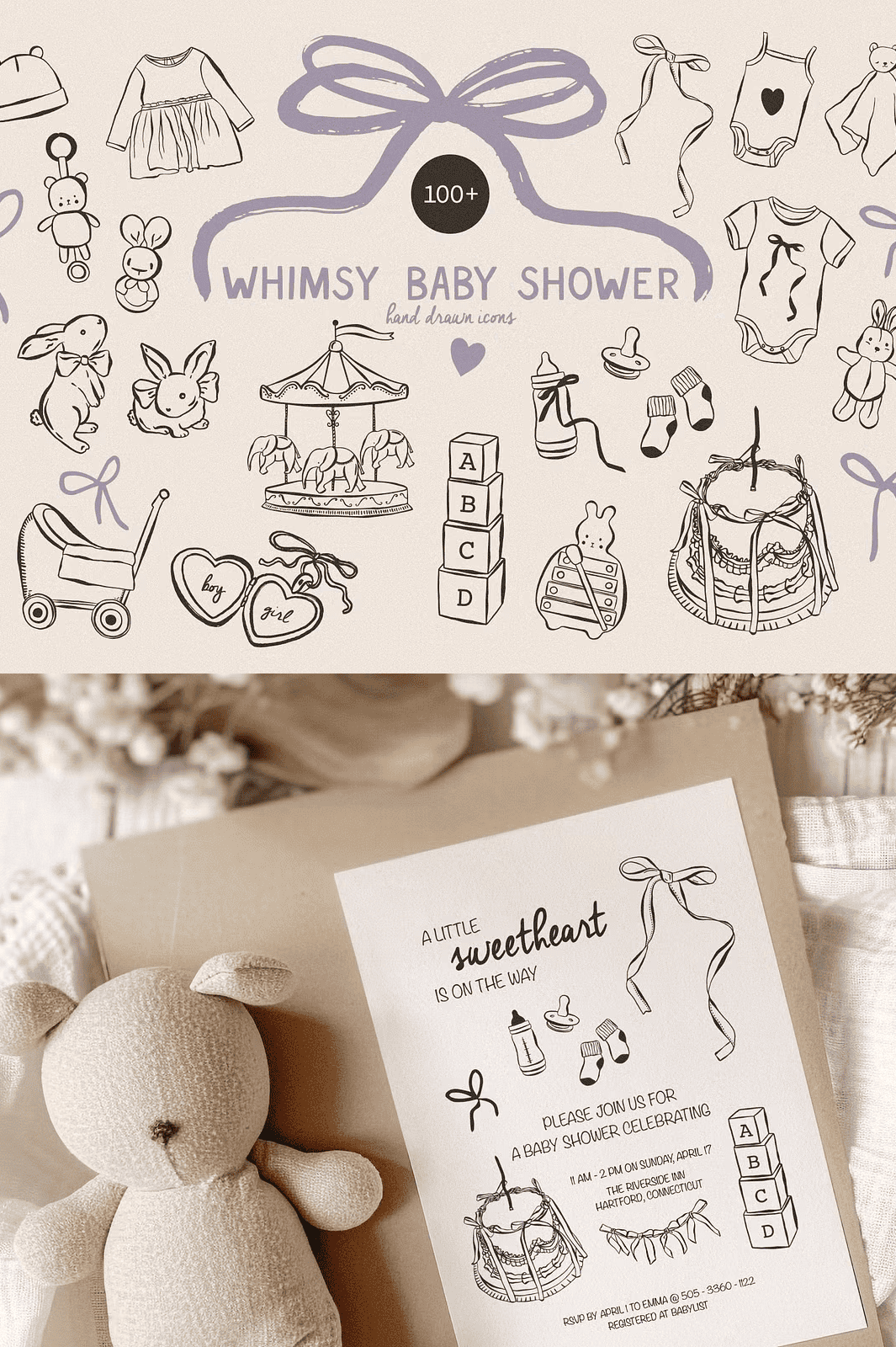 – **Baby Shower Invitations**: Pair whimsical doodles with elegant frames and a soft pattern background for a luxurious yet playful feel.